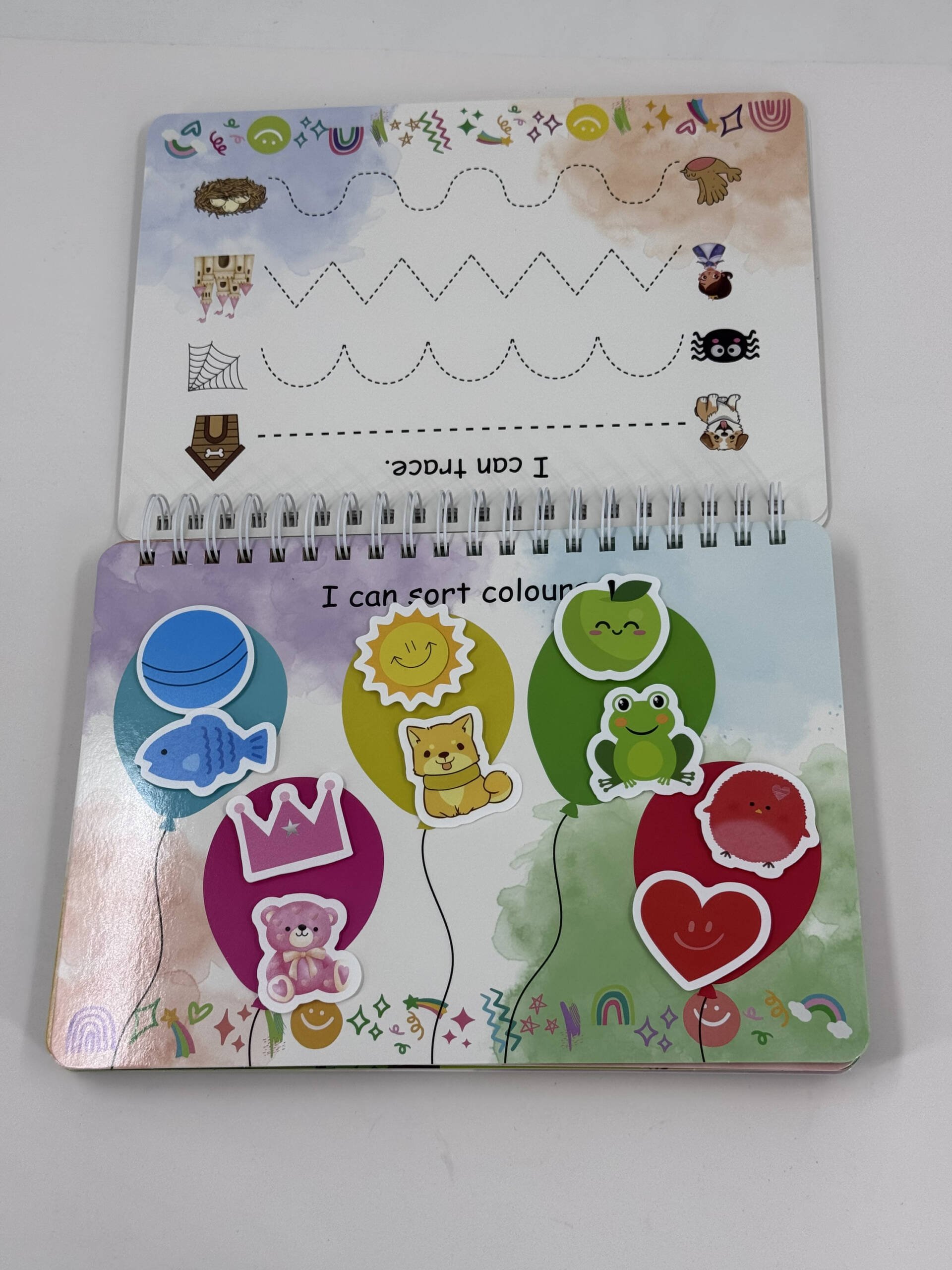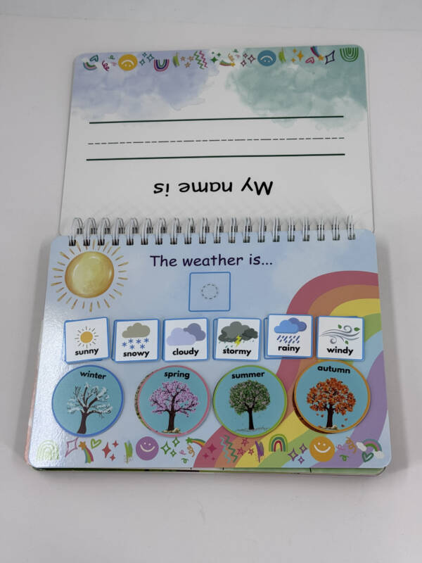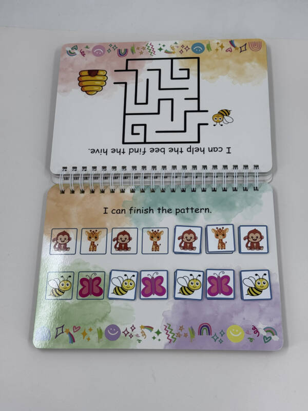 My Learning Booklet includes 20 pages of learning activities including the cover, 9 velcro activities and 9 dry wipe activities.
